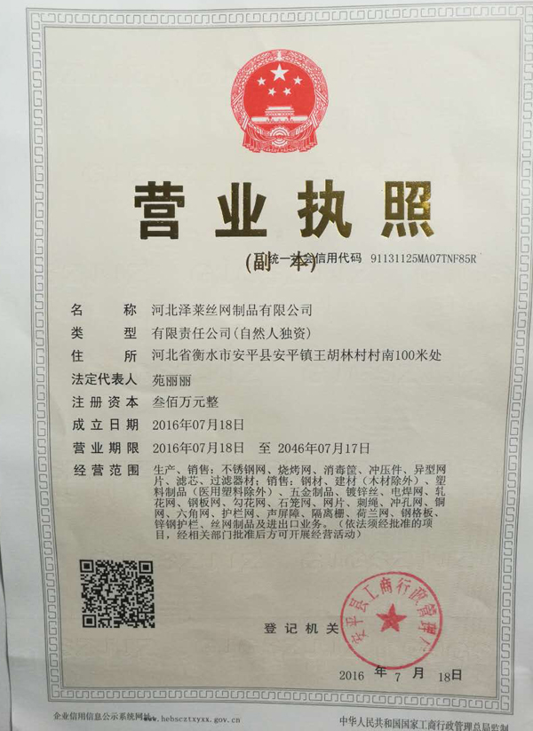 版權(quán)所有Copyright ?河北澤萊絲網(wǎng)制品有限公司 ICP備案: 冀ICP備16020280號-1